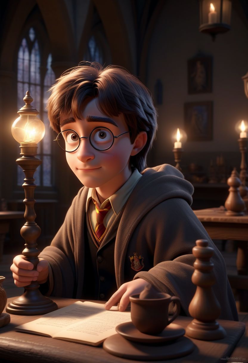 (semi-realistic disney cartoon, volumetric lighting:1.1),harry potter and hermonie