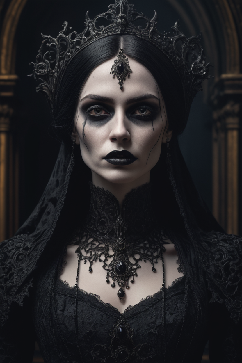a woman, sfw,, (Gothic style :1.3), Dark, mysterious, haunting, dramatic, ornate, detailed, (disgusting, horrifying, masterful, mysterious:1.3), enchanting, (high details, 8k:1.3)