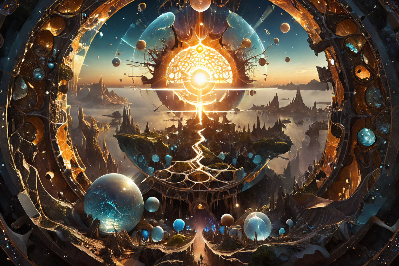 <lora:xl_more_art-full_v1:0.7>, (best quality:1.5), (intricate emotional details:1.5), (ultra detailed), (sharp details), a detailed digital illustration of [A planet with a fractured surface, revealing a labyrinth of tunnels leading to subterranean civilizations:[A subterranean world adorned with luminescent crystals, casting a surreal glow:0.3], Lens Flare, (Clean vector:1.3), (asymmetry:1.3) <lora:PE_EpicLand:0.7> PEEpicLand, <lora:more_details:1> <lora:sdxlaarg_aerial:0.7> archiaerialview, architecture, sunset <lora:Sacred_Geometry_XL:0.7> sacred geometry
