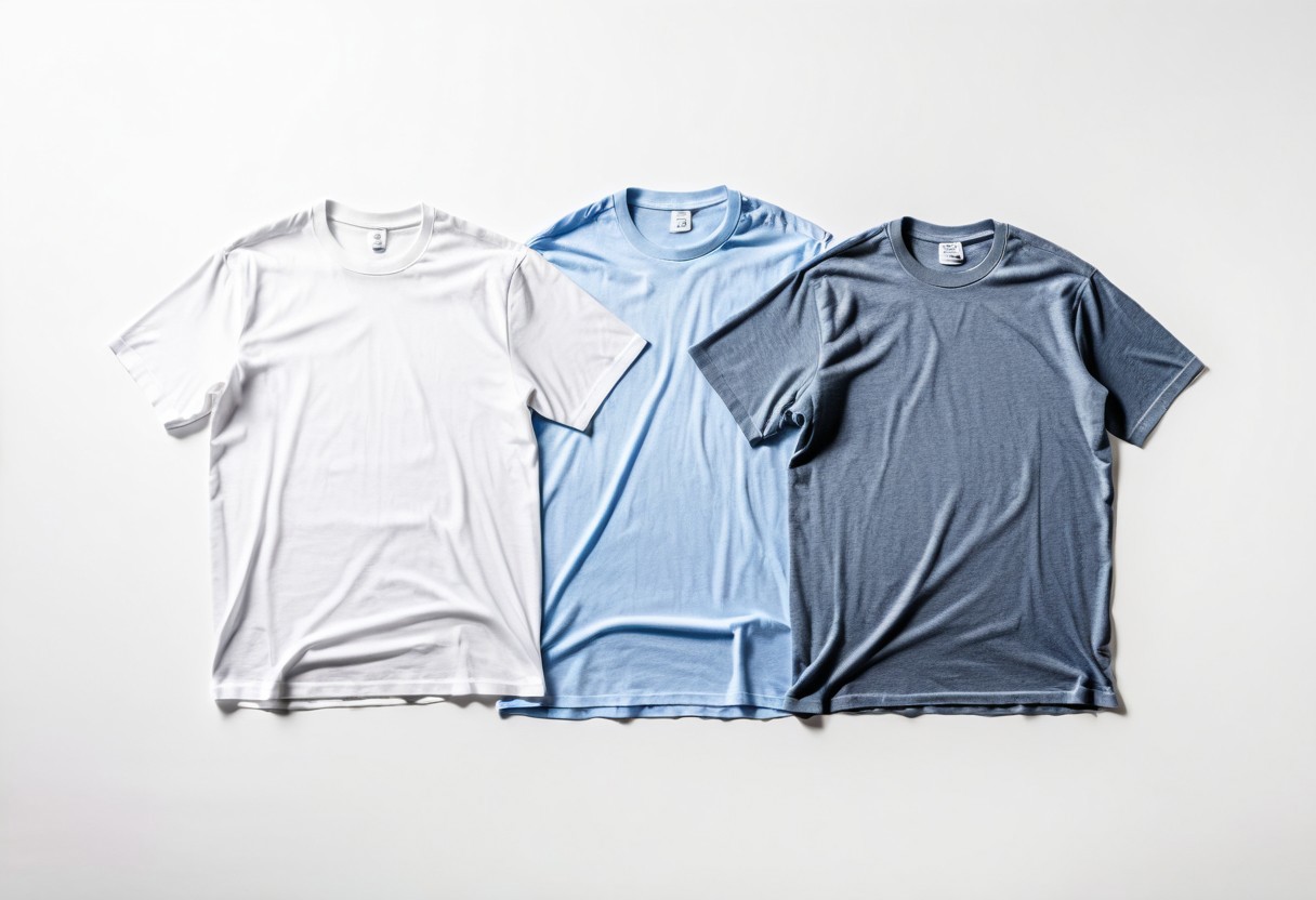 white background 3 shirts, are shown when they are open at a distance from each other, [suitable for designing a logo on the shirt] colors: gray, blue, white