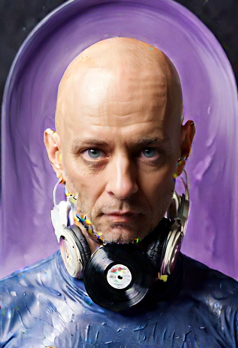 bald head, smooth bald head, ral-vynlrcrdz, bck, Moby Grape, the bald DJ. Moby playing records in a club, club DJ,