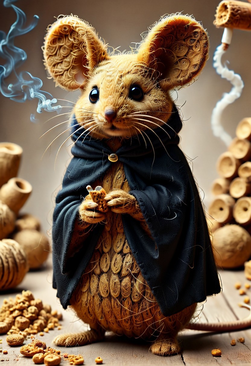 pamcocomat, a funny cartoon mouse wearing a black cape smoking, flux-style, civit_nsfw, pamcocomat, intricate, intricate patterns, complementing hues, masterpiece, golden ratio, intricate details, colorful, sharp, sharp outlines, high contrast, vibrant, ultra detailed, 8k