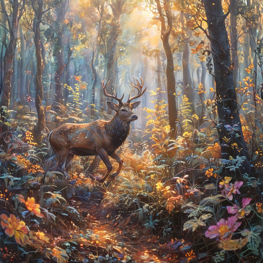 stag running through a forest, exquisite, elegant, ghostly, <lora:PsychadelicChaosWorldMorphXL:-0.3> psychadelic <lora:extremely_detailed:0.4> extremely detailed <lora:SunsetSplendor01_CE_SDXL:0.4> SnstSpldrCE