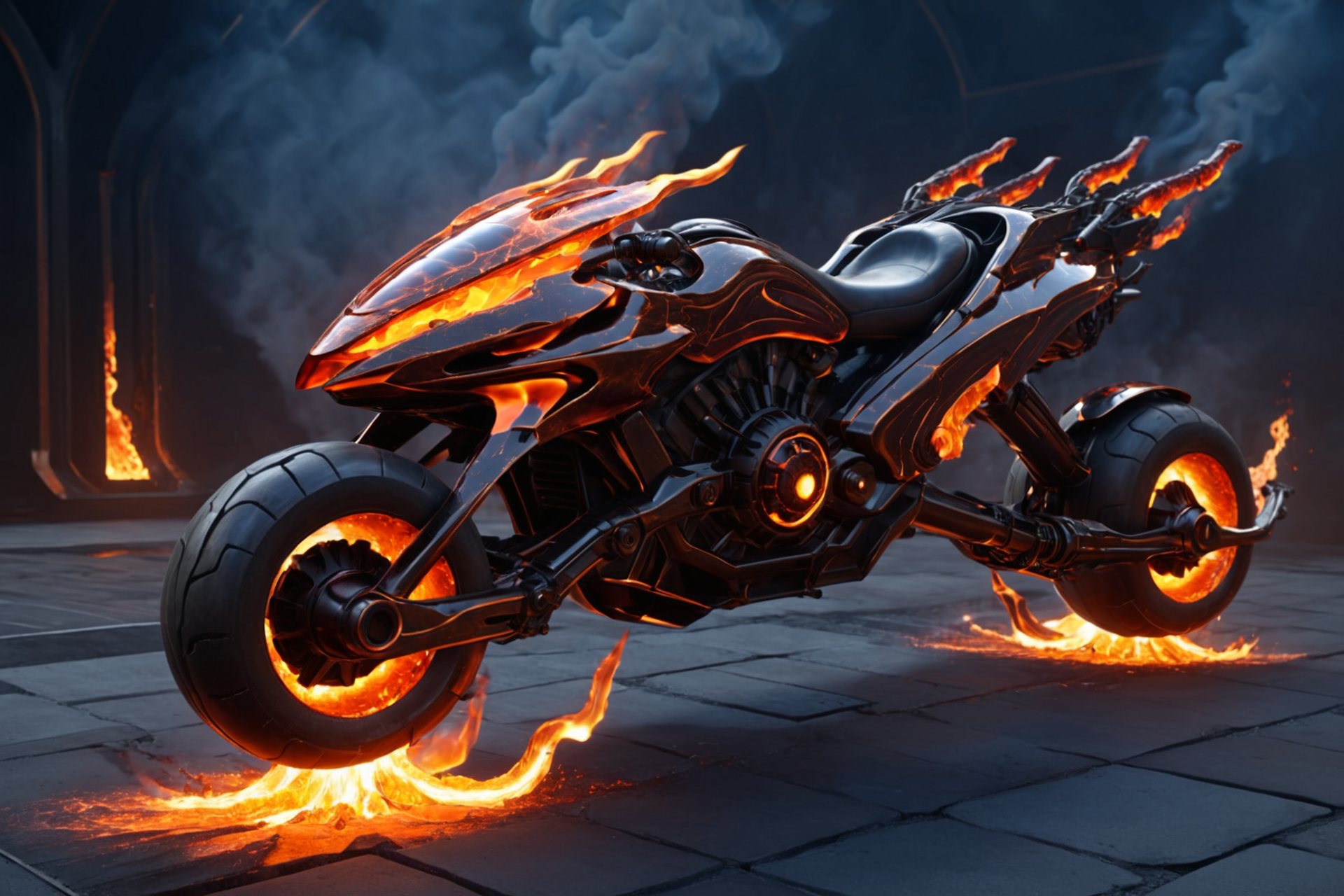 masterpiece, best quality, , molten hoverbike, fiery thrusters, smoky design, solo, HavvoricFireDarkstyle, shadow undercarriage, smoky light, ember futuristic plaza, fiery benches, smoky fountains, detailed background, HavvoricFireDarkstyle, infernal ascend on platform, fiery engines, smoky hum, infernal dynamic angle, wide shot, flame futuristic barrier, fiery lines, on track, best quality, rich colors, photorealistic style, high detail, hyper-realistic, highres, 4K resolution, realistic photo, masterpiece, ultra-detailed, HavvoricFireDarkstyle, blazing white, fiery gloss, dark flash, smoky shine, medium shot, <lora:HavvoricFireDarkstyle:1>