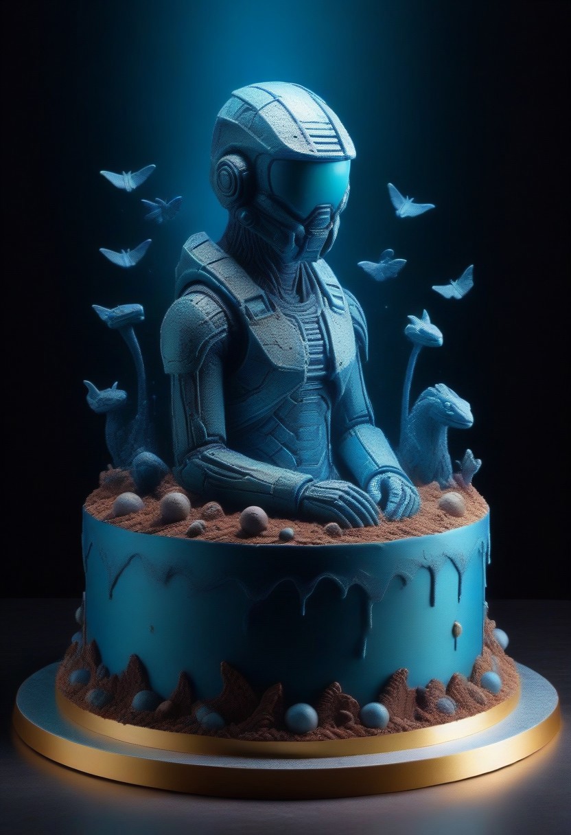 Create a visually striking social media banner for the channel "civitai creatures" featuring a dynamic scene with various hybrid creatures. The title "civitai" in 3D melted text style should be one of scene and add a tagline such as " civitai ", Use bold, contrasting colors like electric blue, neon green, or metallic tones to add a high-tech feel. The banner dimensions should have a creative lab or workshop vibe, as if these creatures are being crafted in a digital environment. Incorporate glowing screens, holographic effects, or circuit-like patterns to emphasize the AI theme. masterpiece,absurdres cake concept